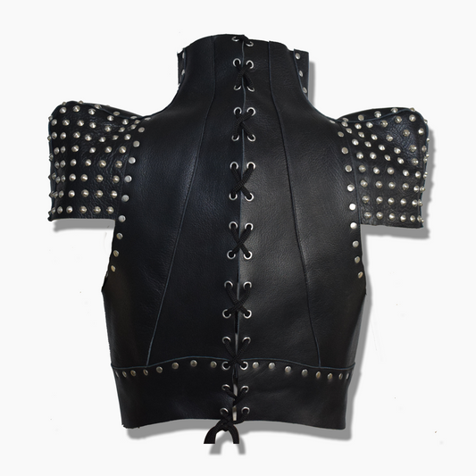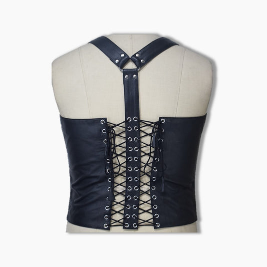 Carlito Black Leather Steel Boned Corset Waistcoat