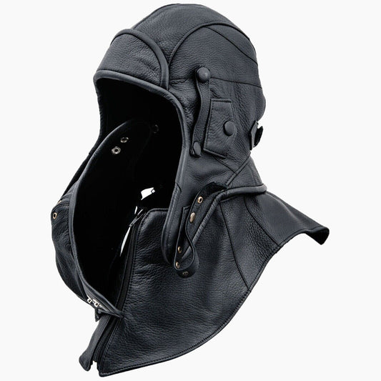 Leather Aviator Cap with Collar and face cover World War II Hat