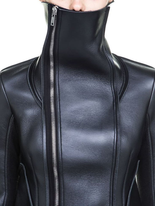 Leather Jacket with High Collar