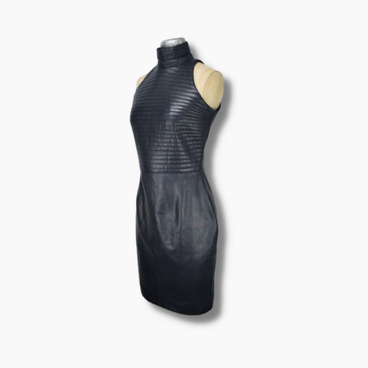 Solid Real leather Bodycon Women Sleeveless Mini Quilted Dress