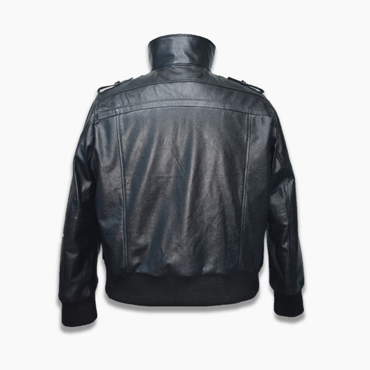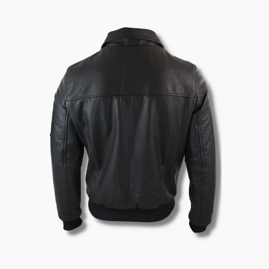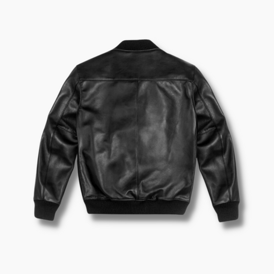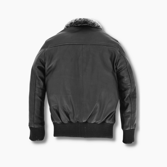 Amand Black Leather Bomber Jacket with Detachable Collar