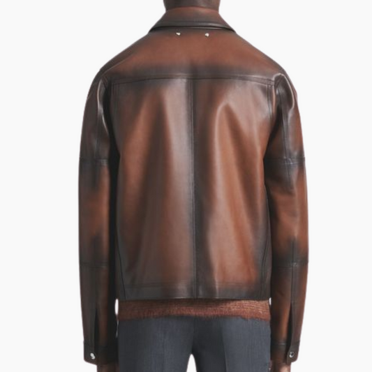 Austin Brown Leather Slim Fit Classic Biker Jacket