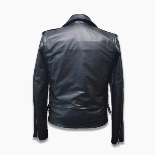 Mens Sheepskin Distress Motorcycle Biker Leather Jacket