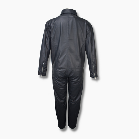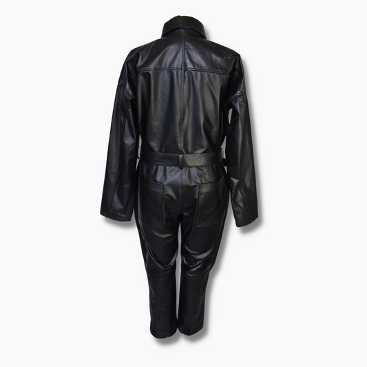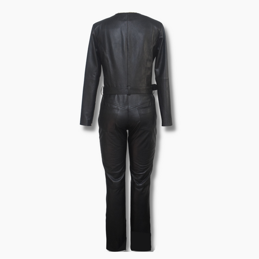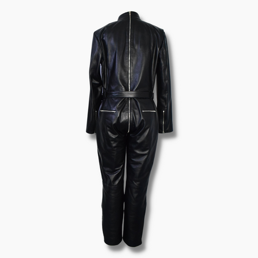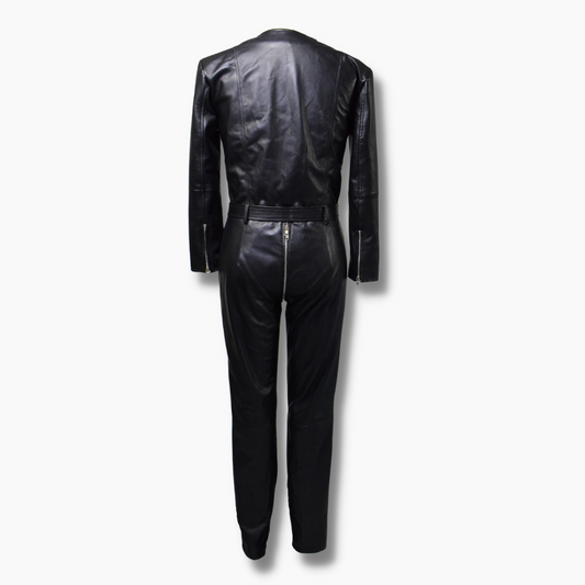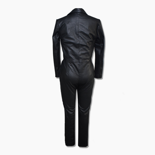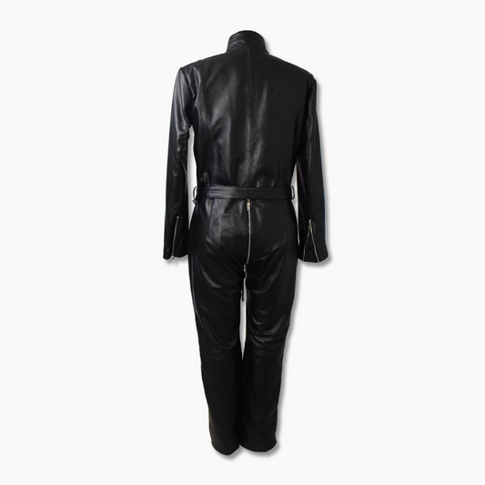 Jenny Black Leather Biker Jumpsuit