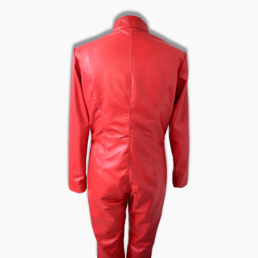 Elise Red Leather Biker Jumpsuit