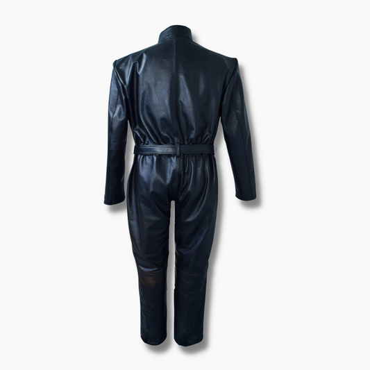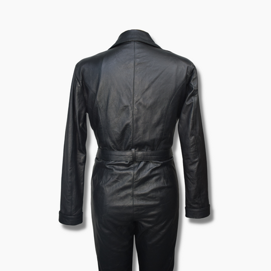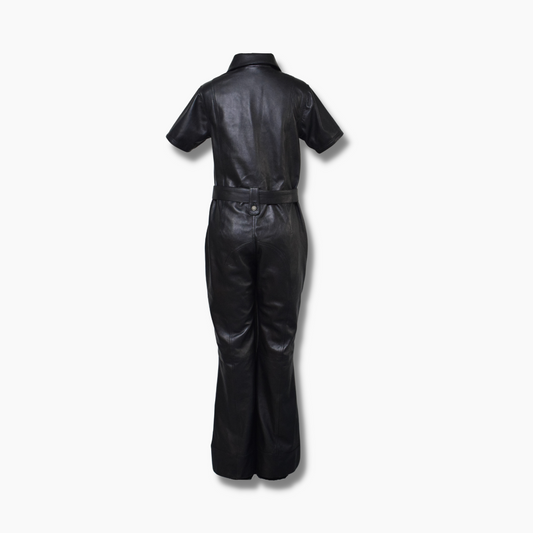 Jean Black Leather Jumpsuit with Belt