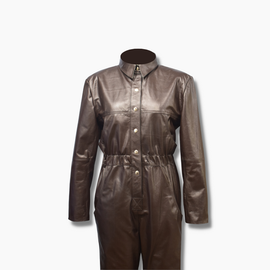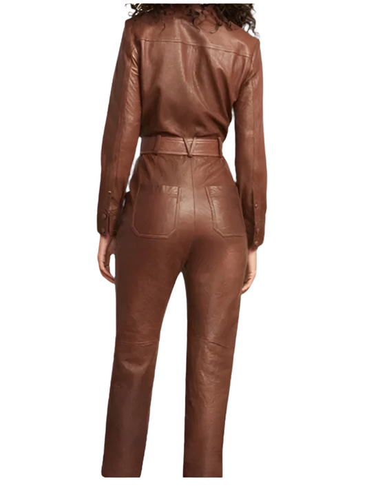 Trixie Brown Leather Buttoned Jumpsuit