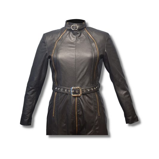 Judi Black Leather Catsuit with Belt