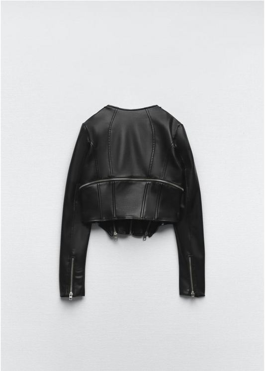 leather bustier top with a sweetheart neckline and thick shoulder straps