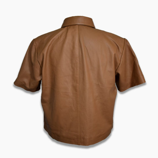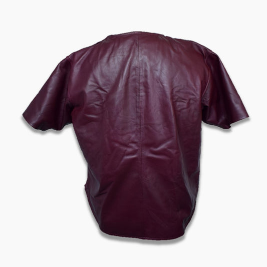 Ron Burgundy Leather Half Sleeves T-shirt Shoulder Zip