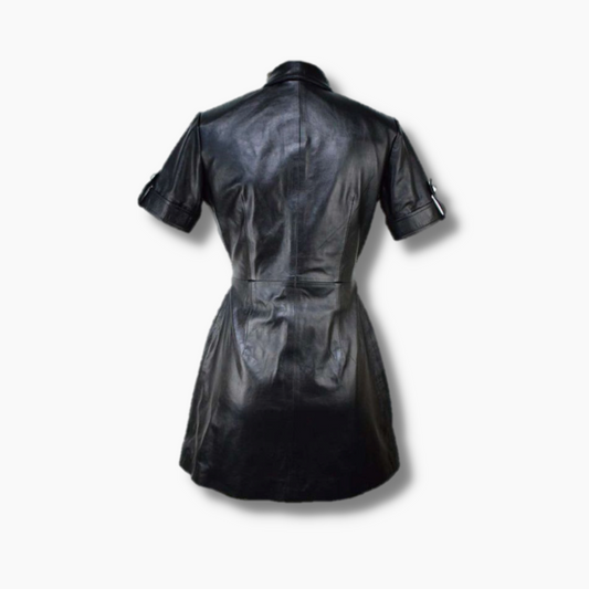 Women's Real Leather Casual Wear Belted Shirt Dress With Flap Pockets