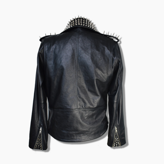 Lamar Black Leather Spiked Studded Biker Jacket