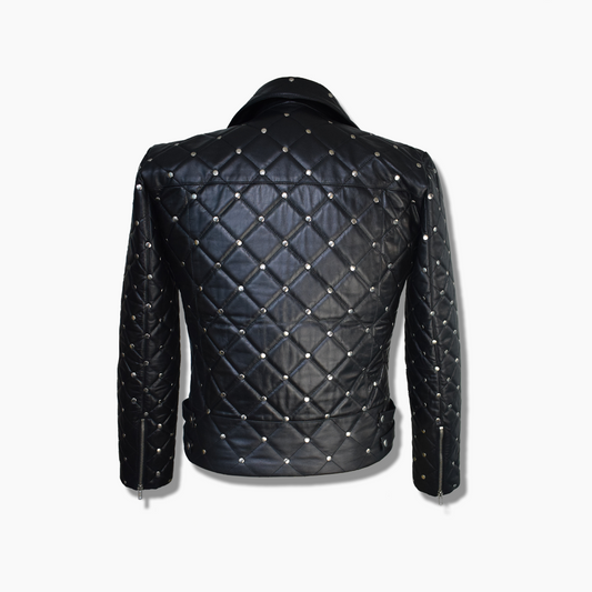 Jared Black Leather Studs Biker Quilted Jacket