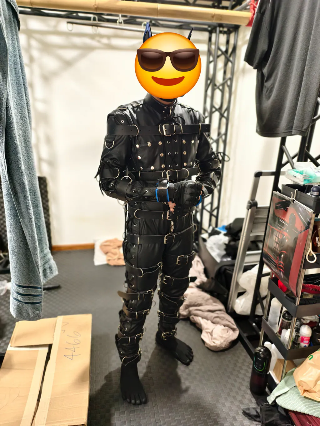 Real leather Bondage padded suit.